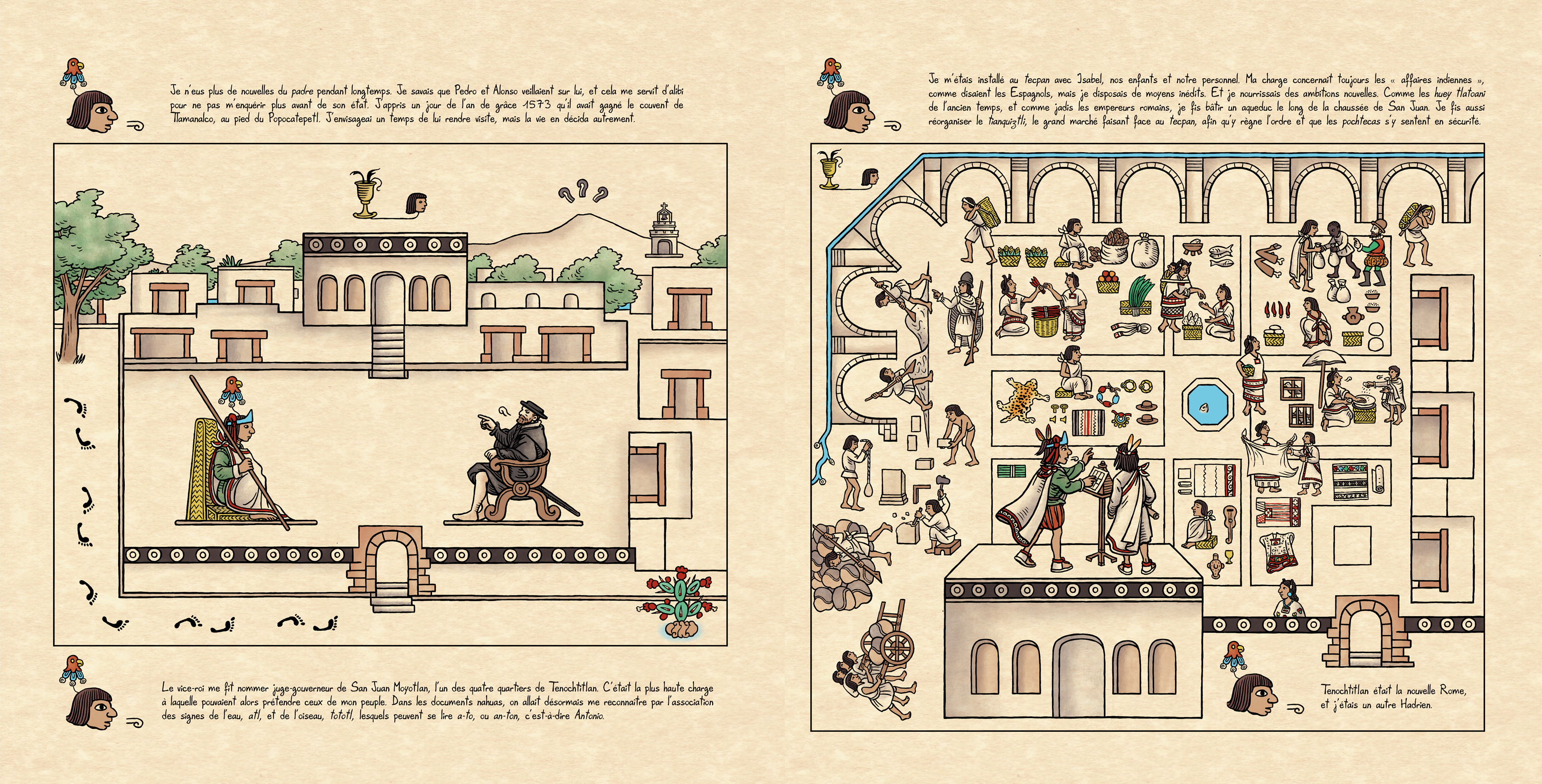 Quand j’ai commencé cet album, je m’étais déjà intéressé au Mexique colonial mais je ne savais pas encore que ce Codex Mendoza deviendrait, dix ans plus tard, une des sources graphiques les plus importantes pour mes représentations du monde aztèque dans Les Sentiers d’Anahuac…