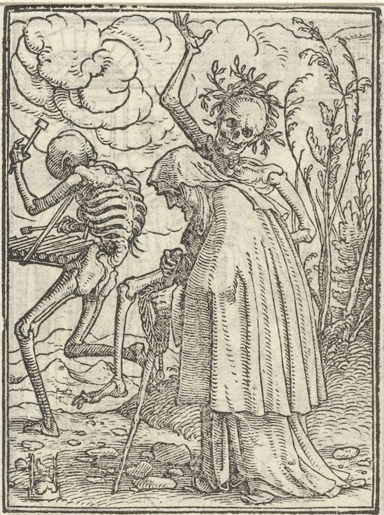Dans Les Sentiers d’Anahuac, il y a finalement assez peu de citations graphiques d’œuvres du XVIe siècle, hormis quelques passages, comme les représentations de la mort inspirées par les gravures de Hans Holbein (Simulachres et historiées faces de la mort, publiés en 1538, qu’on peut consulter sur Gallica), ou l’apparition de l’archange Saint Michel inspirée par Raphaël.