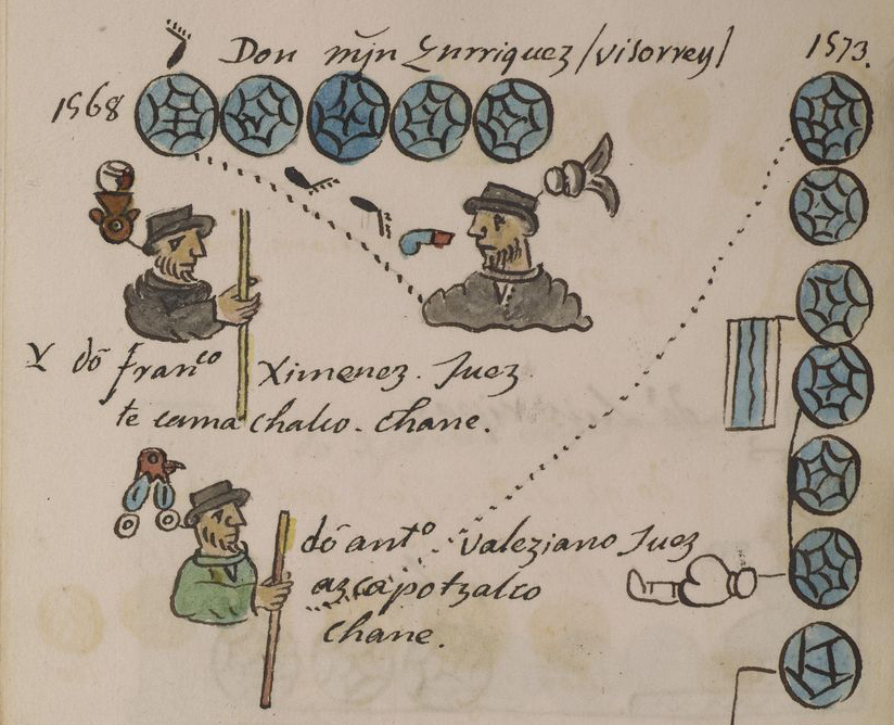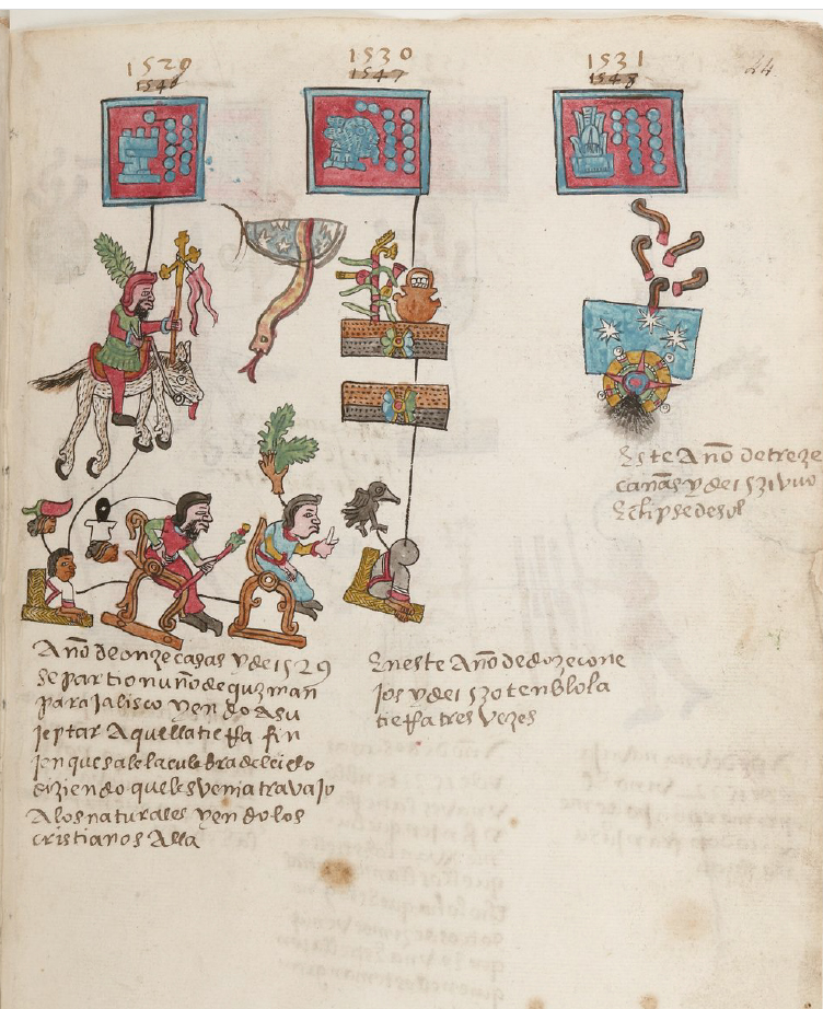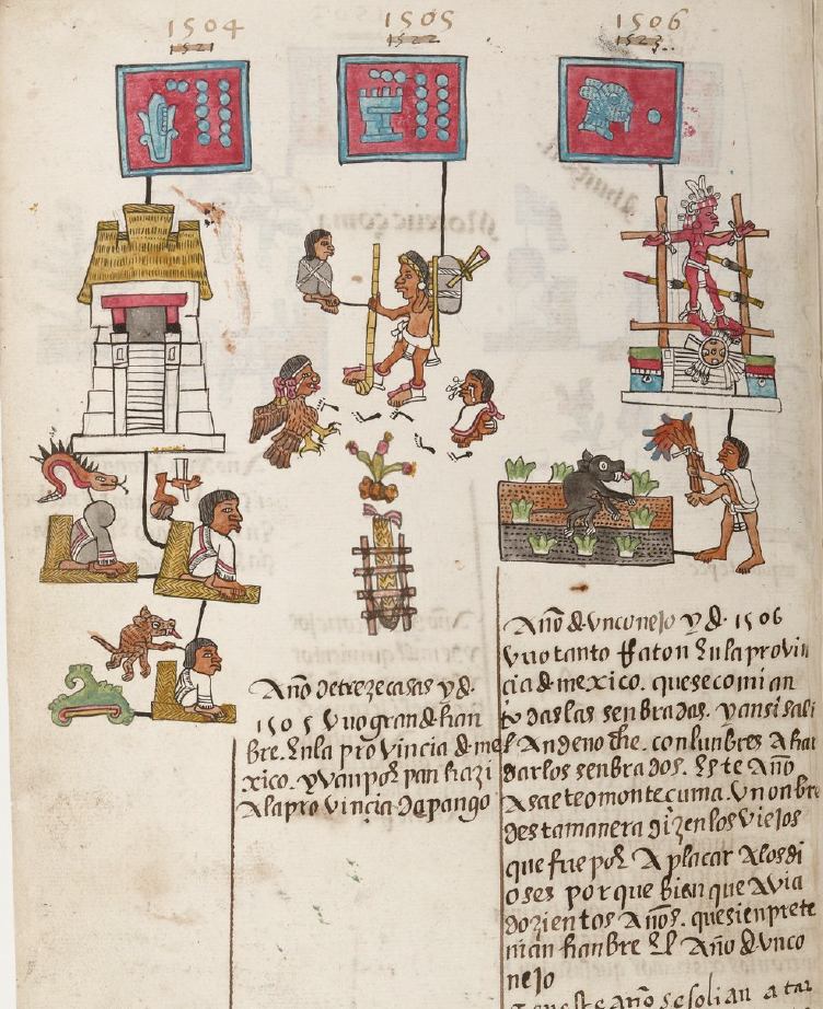 Codex Bodley (époque préhispanique ou début de l’époque coloniale) : https://digital.bodleian.ox.ac.uk/objects/2b06f496-3092-43fb-b0c1-fd0b377dabbd/surfaces/84c5106c-36b8-4ed0-9b1e-0f9456611a98/